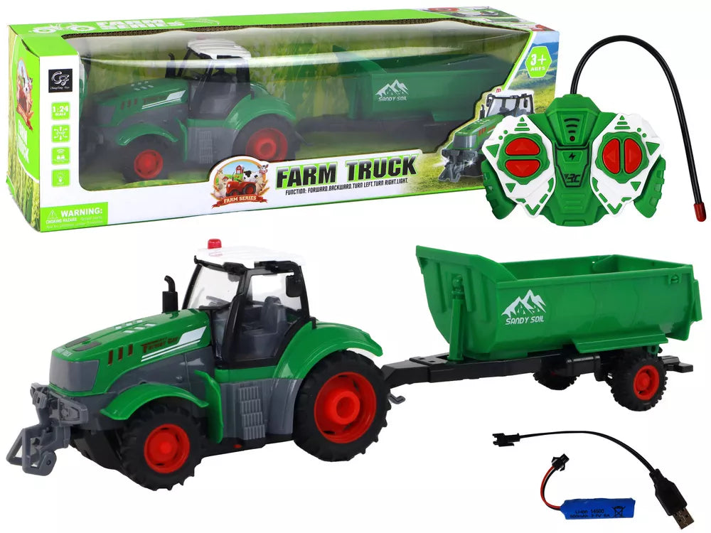 R/C Traktorius su Priekaba 1:24 Šviesos Žalias