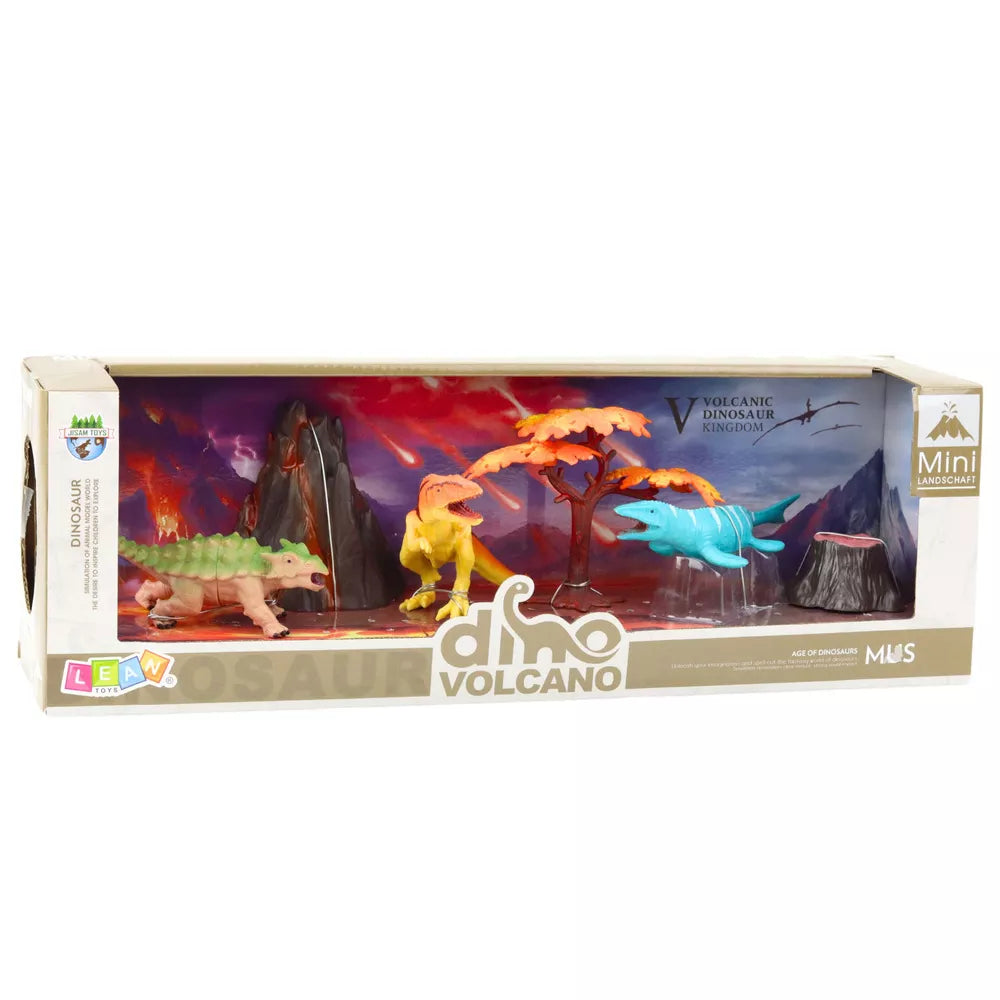 Realistiškų dinozaurų, ugnikalnio ir medžio figūrėlių rinkinys, 6 vnt.