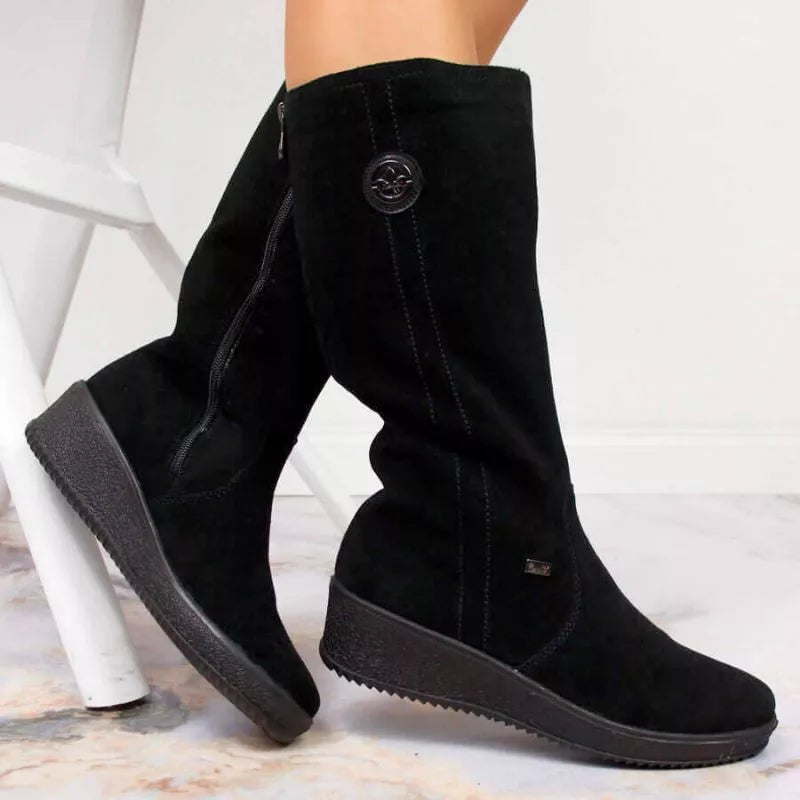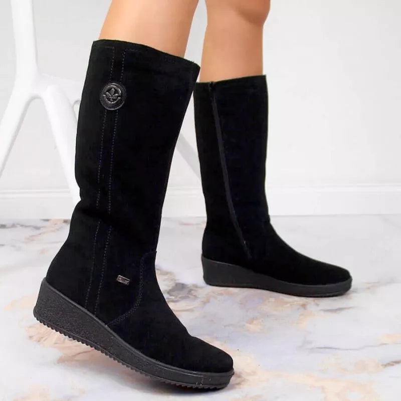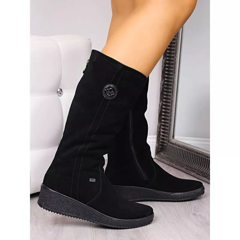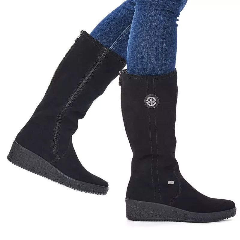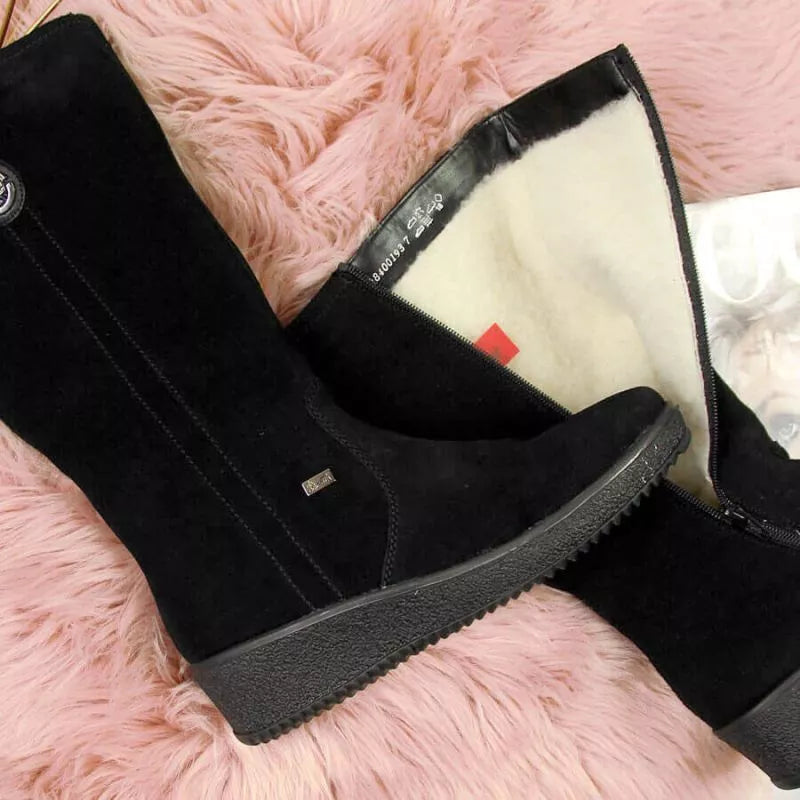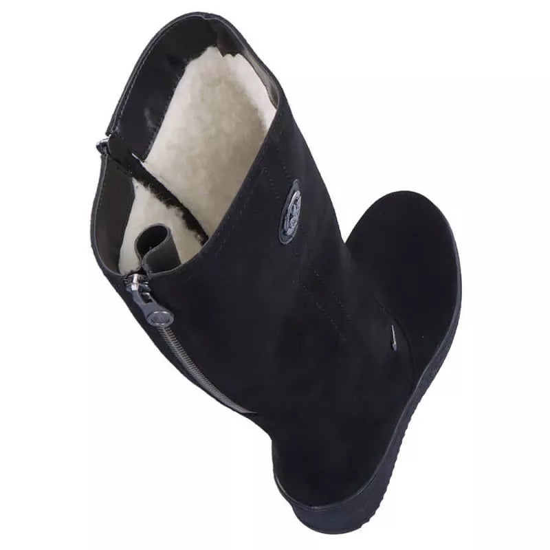 Rieker W R237 vandeniui atsparūs zomšiniai batai su avikailio pamušalu Savybės: Rieker firminiai batai puikiai tinka žiemos dienoms pagaminti moterims... Skaityti daugiau