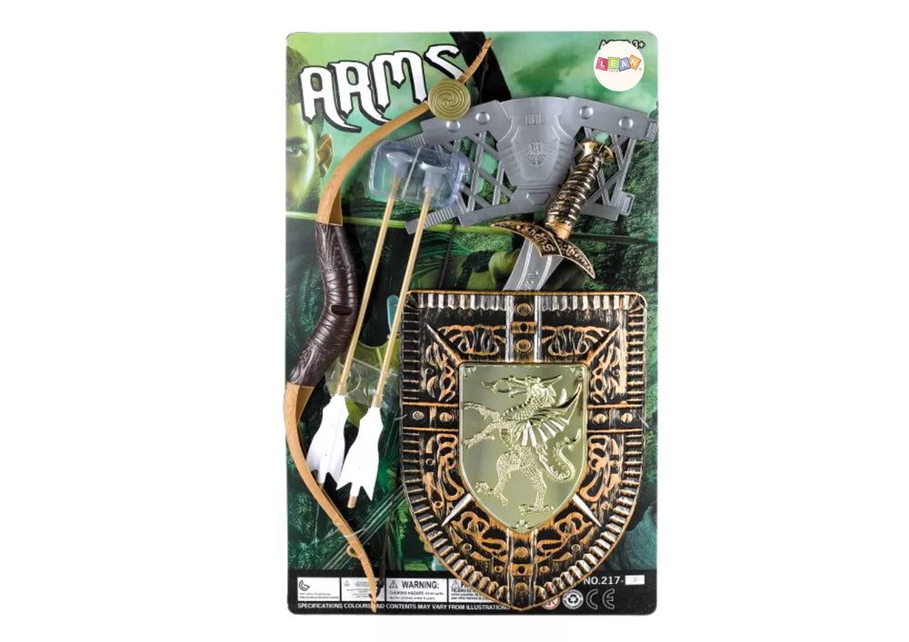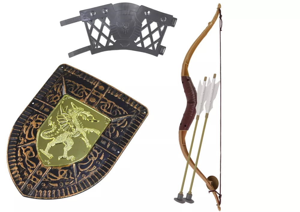 Rinkinį sudaro kalavijas, skydas, riešo apsauga ir lankas su dviem strėlėmis, leidžiantys įvairiapusiškai linksmintis tiek artimose dvikovose, tiek kovose iš toli. Kiekvienas elementas sukurtas taip, kad kuo geriau atspindėtų riterių epochos atmosferą, stimuliuotų vaiko vaizduotę ir kūrybiškumą.