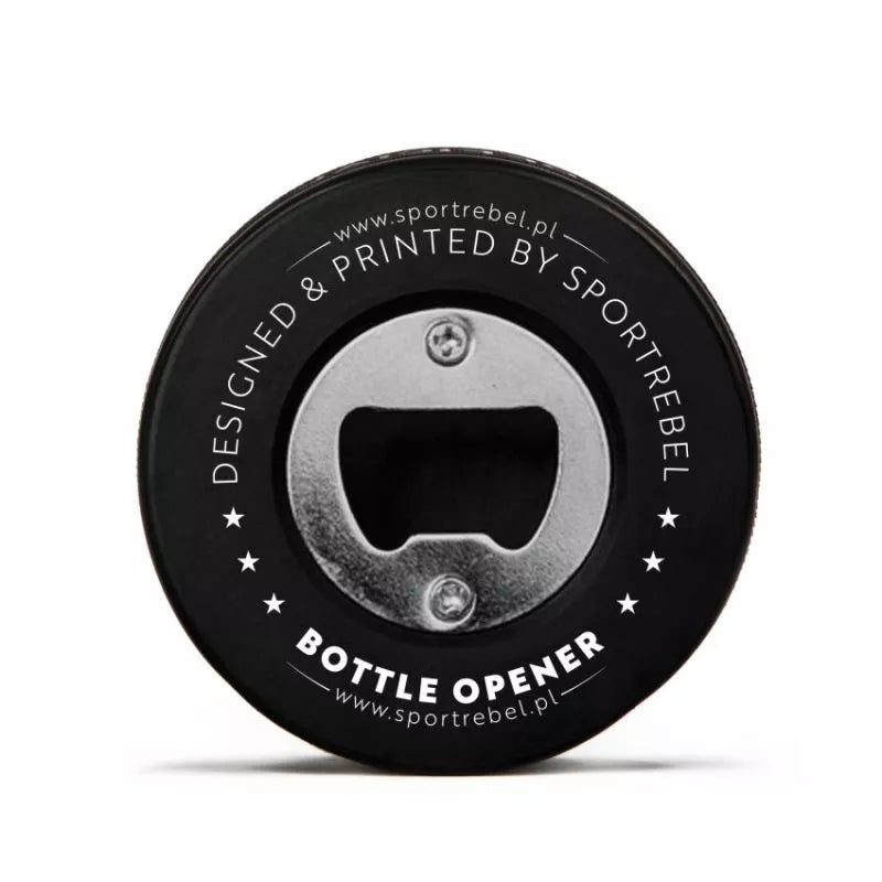 Atidarytuvo funkcija: Kitoje ritulio pusėje yra metalinis atidarymo mechanizmas, todėl tai puikus butelių atidarytuvas. „Sportrebel“ sukurtas ir pagamintas atidarytuvas, kurio juodas dizainas primena klasikinį ledo ritulio ritulį.