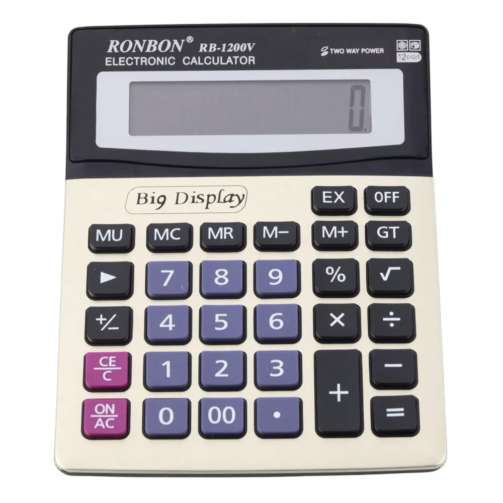 Ronbon RB-1200V kalkuliatorius yra modernus ir praktiškas įrankis, idealiai tinkantis naudoti biure, mokykloje ir namuose. Dėl didelio, aiškaus ekrano ir aiškių mygtukų prietaisas užtikrina aukštą darbo komfortą net ir ilgalaikių skaičiavimų metu. Korpusas kontrastingomis spalvomis ir estetiškas užrašas „Big Display“ pabrėžia jo profesionalų charakterį.