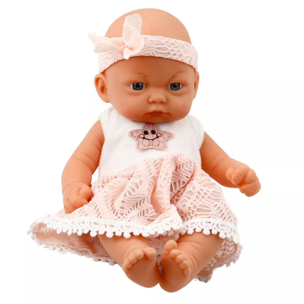 Lėlytė su rožine suknele su nėriniais ir derančia galvos juosta yra nepaprastai žavingas pasiūlymas patiems mažiausiems, mėgstantiems žaisti namus ir imituoti kasdienę suaugusiųjų veiklą. Realistiškai atkartotas veidas, rankos ir kojos bei minkšti drabužiai paverčia lėlę tikra drauge žaidimams ir apkabinimams. Subtilios veido išraiškos suteikia jai unikalų žavesį ir sukelia natūralius rūpesčio jausmus vaikui.