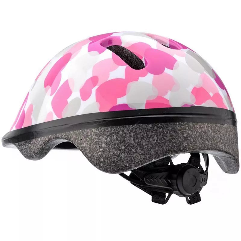 Rožinis dviračio šalmas su širdutėmis, dydis XS 44-48cm, vaikiškas, KS06, 24818, Meteor