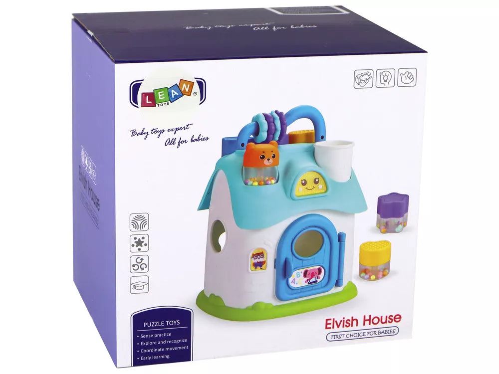 Interaktyvus rūšiavimo namelis sukurtas mokyti per žaidimą. Žaislas ilgam užims jūsų mažylį. Jis sujungia geriausias rankinių ir mąstymo žaislų savybes. Pridedamas rūšiuotuvas moko jūsų mažylį mąstyti logiškai, priderinant tinkamas formas prie tam skirtų skylių.