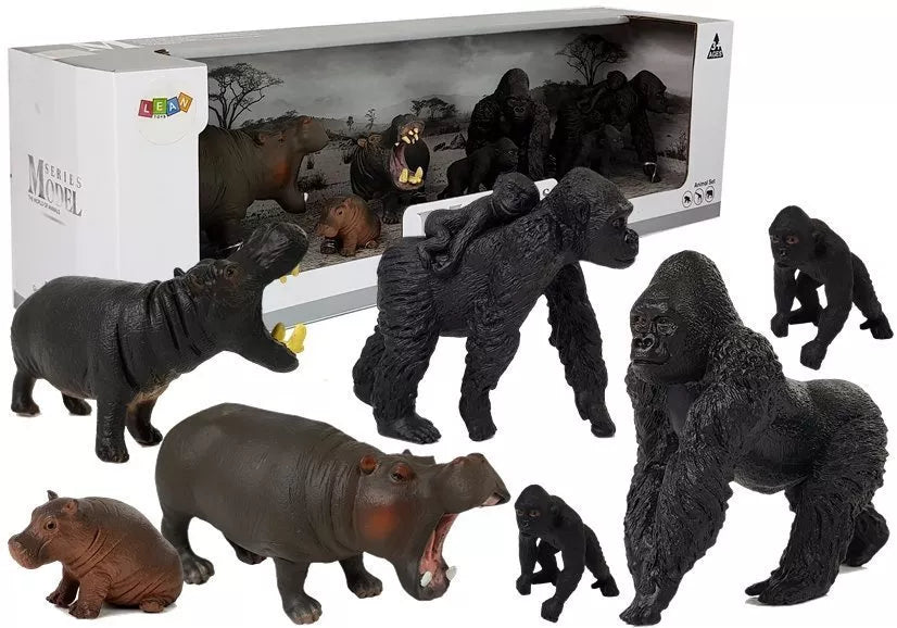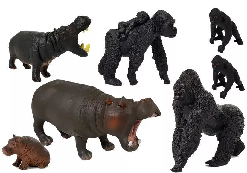 Safari Gyvūnų Figūrėlių Rinkinys Hipopotamai Gorilos