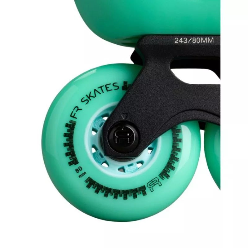 Batai: FRX. Kietas ir patvarus sintetinės medžiagos: Suteikia stabilumą, tvirtą atramą ir tikslumą čiuožiant. Apvalkalas sukurtas optimaliai stabilizuoti pėdą, užtikrinant momentinį perkeliamą jėgą į riedučius. Tai žymiai padidina riedučių kontrolę, leidžiant daug lengviau manevruoti.