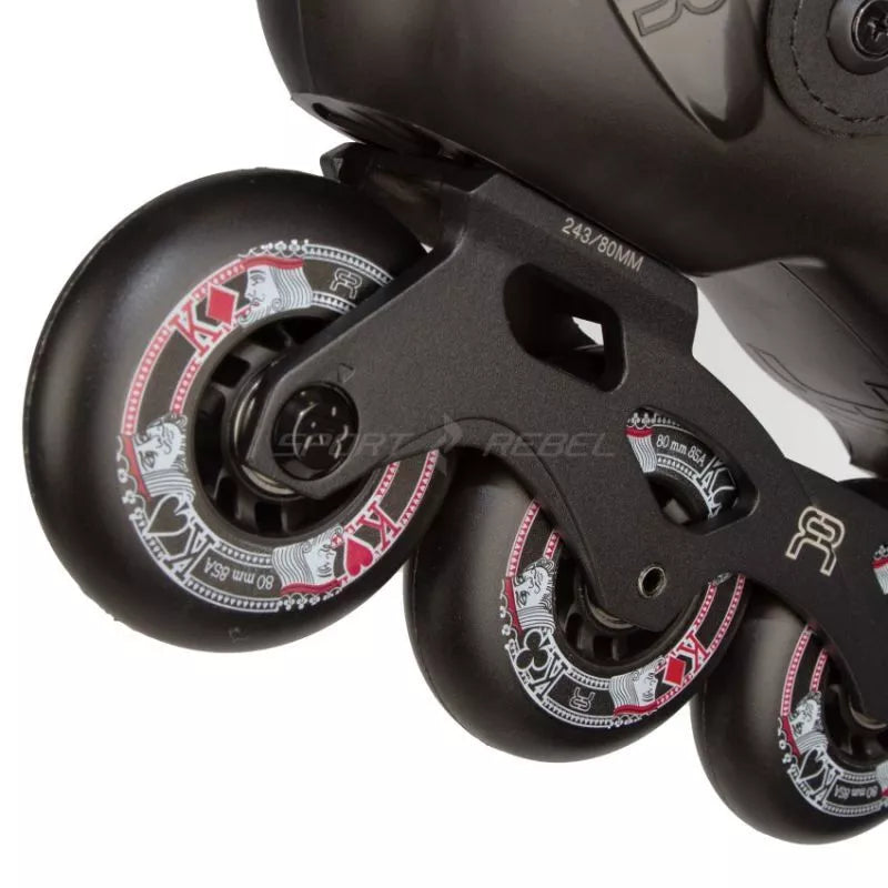 Ratai: Black Street Kings. Aukštos kokybės ratai su puikia patvarumo, tikslumo, kietumo ir sukibimo pusiausvyra. Guoliai: Twincam MW7 Freeride. Guoliai, skirti freeride ir urban skating – tvirti, greiti ir patvarūs. Dabar galite atlikti šuolius ir triukus, nesijaudindami, ar guoliai atlaikys kitą šuolį.