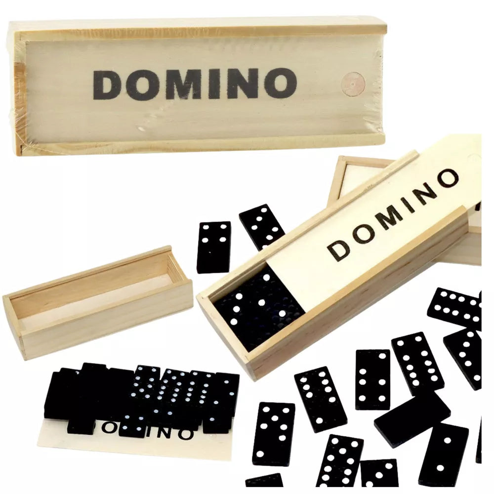 Šeimos loginis žaidimas „Domino“ 32 medinės plytelės juodos