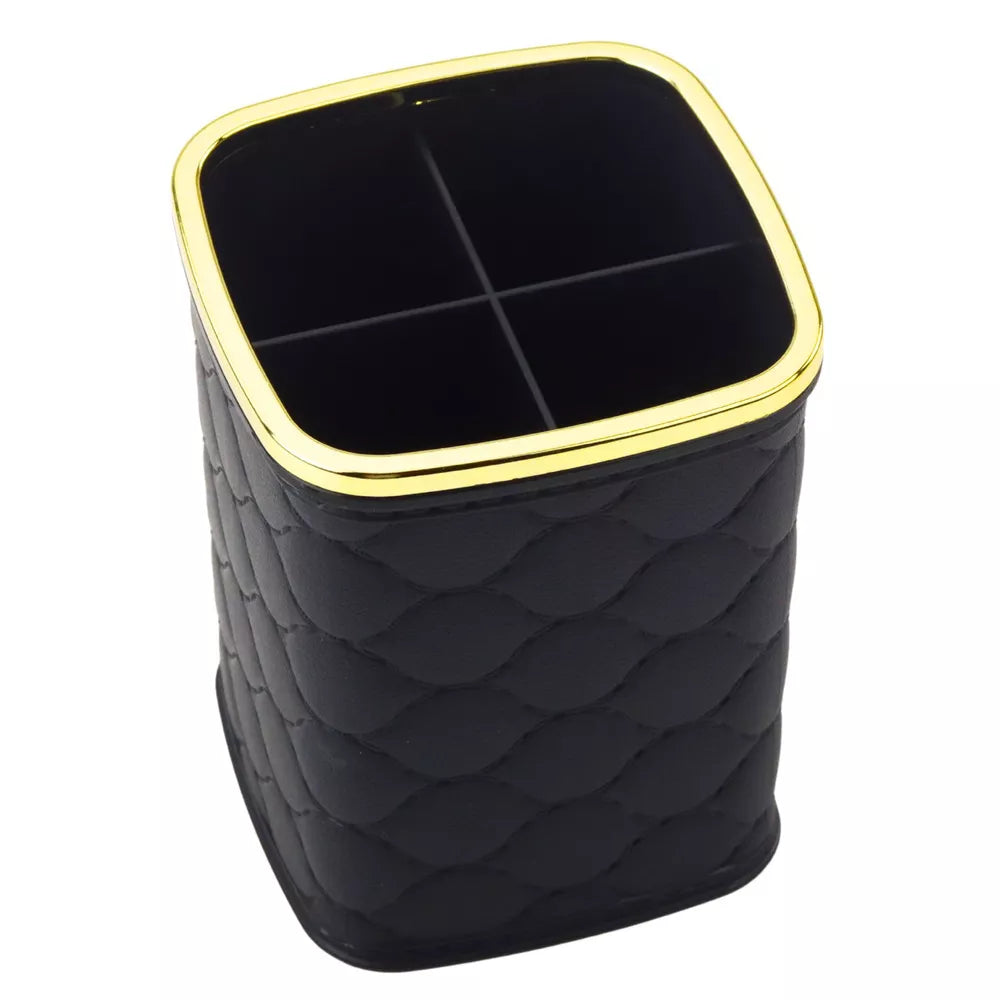 Šis keturių skyrių teptukų organizatorius yra išskirtinai praktiškas aksesuaras, kuris padės jums tvarkingai laikyti savo kosmetikos priemones. Sukurtas kasdieniam naudojimui, jis puikiai tiks tiek ant namų kosmetinio staliuko, tiek profesionaliame grožio salone. Keturios atskiros sekcijos leidžia lengvai sutvarkyti jūsų teptukus, akių ir lūpų kontūro pieštukus, tušus, lūpų dažus ir kitus smulkius aksesuarus, visada laikant juos po ranka.