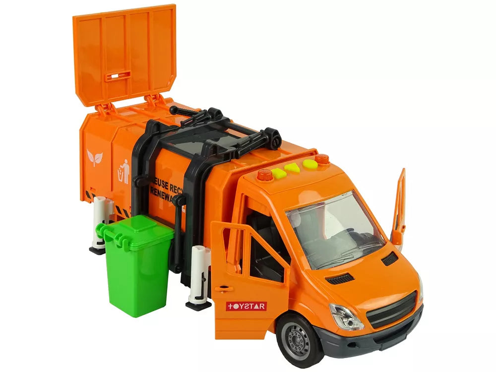 Šiukšliavežis su frikciniu varikliu ir garso efektais, oranžinis