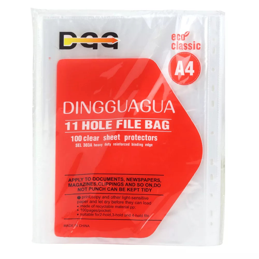 Skaidrios dokumentų kišenėlės su 11 skylių, A4 formatas, 100 vnt.