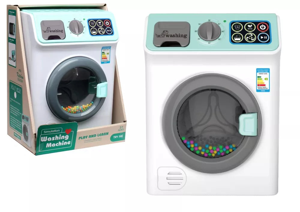 Žaislinė skalbimo mašina maitinama 3 AA 1,5 V baterijomis, kurios yra įtrauktos į rinkinį. Įranga visiškai pagaminta iš aukštos kokybės, sertifikuotos plastikinės medžiagos. Žaislo dizainas neturi aštrių galų, todėl tai yra labai saugus žaidimo pasiūlymas. Vaikų skalbimo mašina turi CE sertifikatą ir atitinka EN 71 standartą. Žaislas supakuotas į estetišką kartoninę dėžutę su atviru ekranu, todėl puikiai tinka kaip dovana vaikui.