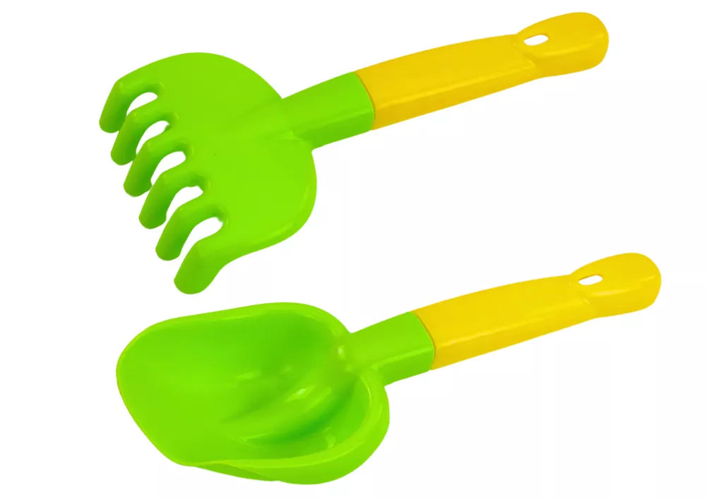 Į rinkinį taip pat įeina kastuvas, kuris yra pagrindinis įrankis kasti, nešti ir formuoti smėlį. Kastuvas leidžia vaikams statyti pilis, kurti tunelius ir kitas smėlio konstrukcijas. Kartu su grėbliu, kuris taip pat yra rinkinio dalis, vaikai gali išlyginti smėlio paviršių, kurti įvairius raštus ir atrasti paslėptus lobius.