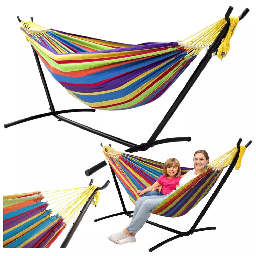Šį pilną hamako komplektą sudaro tvirtas plieninis rėmas ir didelis, patogus, spalvingas hamakas. Tai puikus pasirinkimas visiems, kurie vertina patogų poilsį sode, terasoje ar balkone. Dėl gerai apgalvotos konstrukcijos ir aukštos kokybės medžiagų, komplektas užtikrina stabilumą, saugumą ir naudojimo paprastumą.