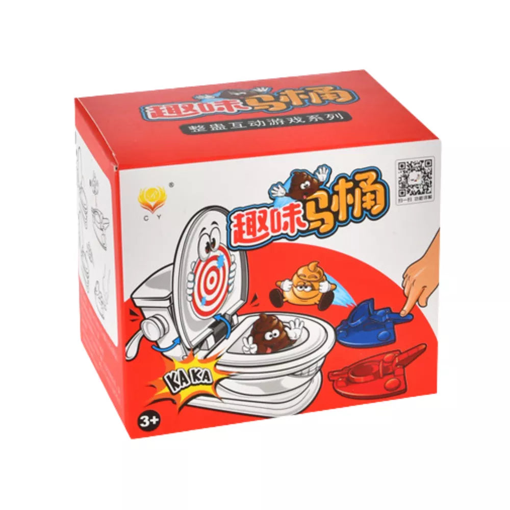 Rinkinyje yra realistiškai atrodantis miniatiūrinis tualetas, spalvingos katapultos ir smagūs „poop“, skirti šaudyti. Žaidėjų užduotis – pataikyti „poop“ į tualeto dubenį – tai paprastas, bet itin įtraukiantis žaidimo mechanizmas. Dėl kompaktiško dydžio (10,5 x 9 x 8 cm) žaidimas idealiai tinka tiek namuose, tiek kelionėse.