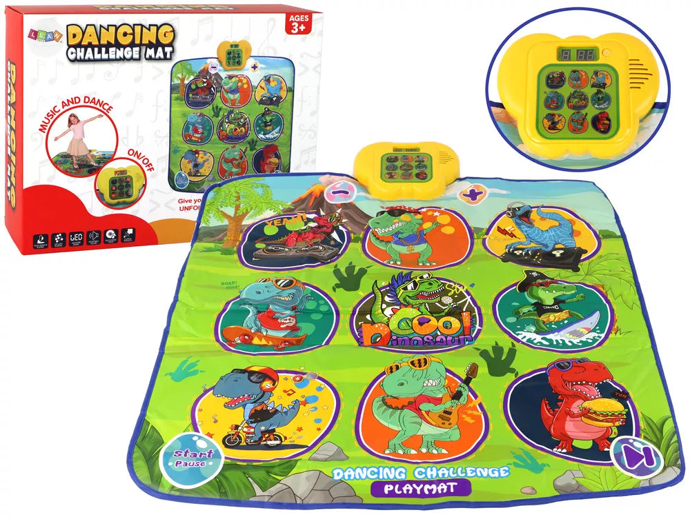 Šokių kilimėlis su dinozauro motyvu yra puikus įrenginys, kuris suteiks pramogų ir aktyvumo tiek vaikams, tiek suaugusiems. Šis unikalus kilimėlis yra 90 cm x 86 cm dydžio, o tai suteikia pakankamai vietos šokti ir laisvai judėti pagal mėgstamą muziką.