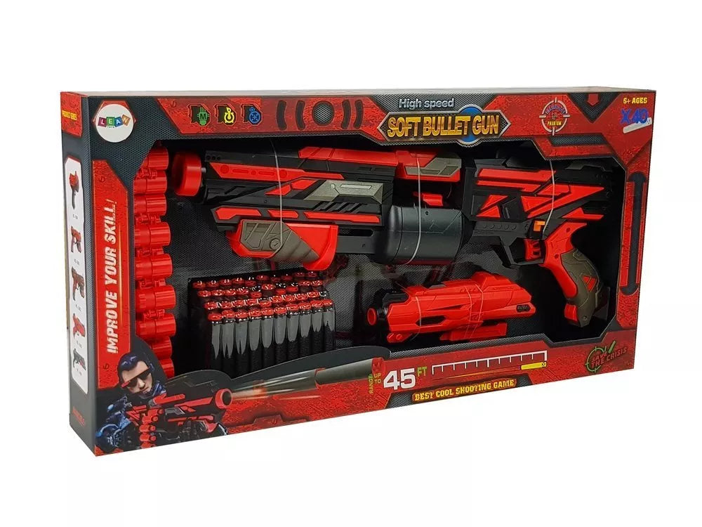 Šautuvas su putų šoviniais 40 vnt. Raudonas/Juodas Taikinys