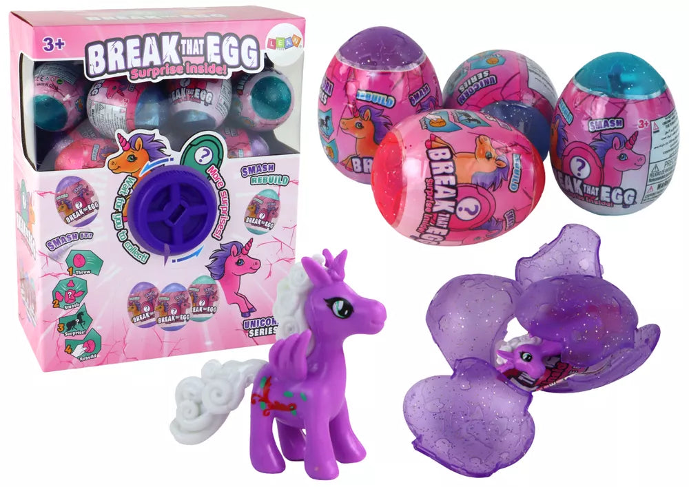 Į rinkinio pakuotę įeina ratukas, kurį pasukus pagal laikrodžio rodyklę, atsitiktinai pasirenkamas vienaragis, kuris išsirita. Šis mechanizmas sukurtas taip, kad kiaušinis iššoktų iš dėžutės per specialią skylę, suteikdamas vaikui jaudinančią staigmeną. Kūdikis gali patirti džiaugsmą atrasti skirtingų tipų vienaragių, atidarant kiekvieną kiaušinį.