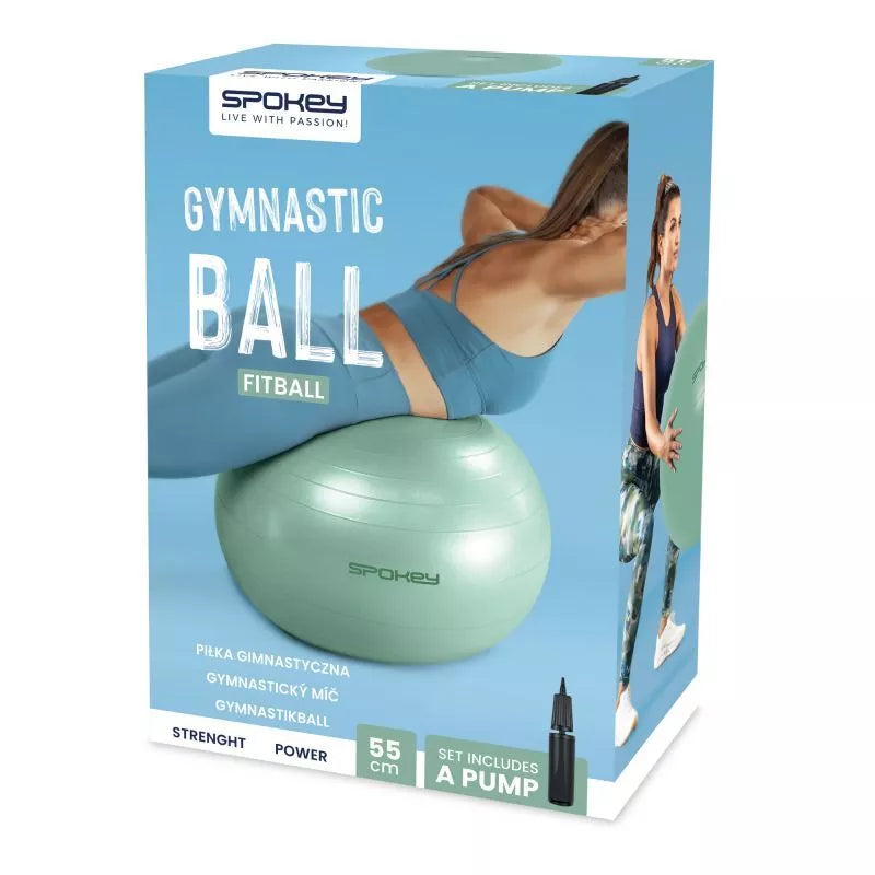 Spokey FITBALL gimnastikos kamuolys pagamintas iš neslystančios medžiagos. Šį efektą dar labiau sustiprina visą kamuolio perimetrą einantys dirželiai. Tai leidžia saugiai atlikti pratimus, reikalaujančius minimalaus kontakto su žeme (pvz., laikant rankas). Spokey FITBALL turi Anti-Burst sistemą, kuri palaipsniui išleidžia orą, jei kamuolys pradurtas. Tai labai svarbu besimankštinančiojo saugumui, suteikiant jam laiko reaguoti (nulipti nuo kamuolio). Kamuolys komplektuojamas su patogiu siurbliu greitam ir lengvam pripildymui oru.
