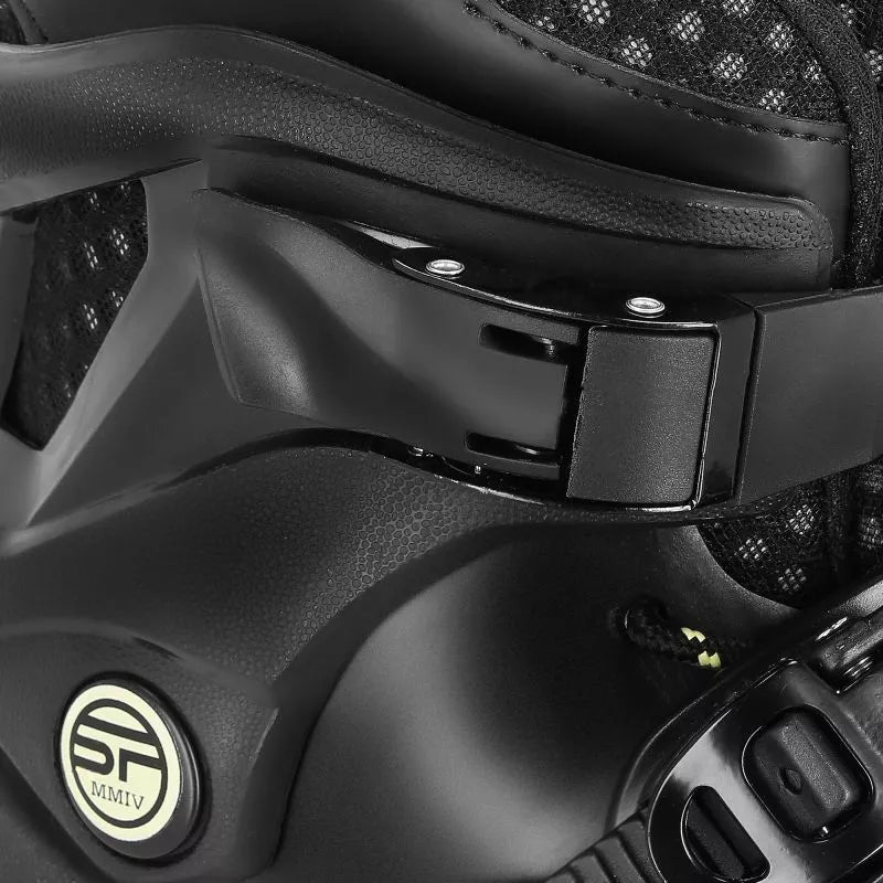 - triguba fiksavimo sistema su dviem sagtukais ir raišteliais leidžia optimaliai priglusti ir užtikrina saugumą greitai važiuojant slalomu, mieste ar laisvo stiliaus važinėjant!