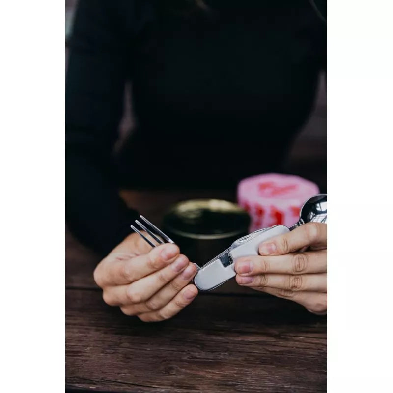 Savybės: Lengvas ir patogus 4-in-1 kelioninis stalo įrankių rinkinys, susidedantis iš šaukšto, šakutės, peilio ir butelių atidarytuvo. Pagamintas iš nerūdijančio... Skaityti daugiau