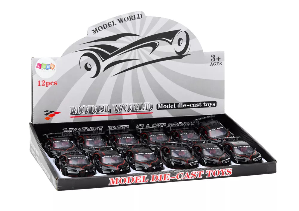 Sportinio automobilio žaislinis modelis 1:32 figūrėlė spoileris metalinis juodas su garsais