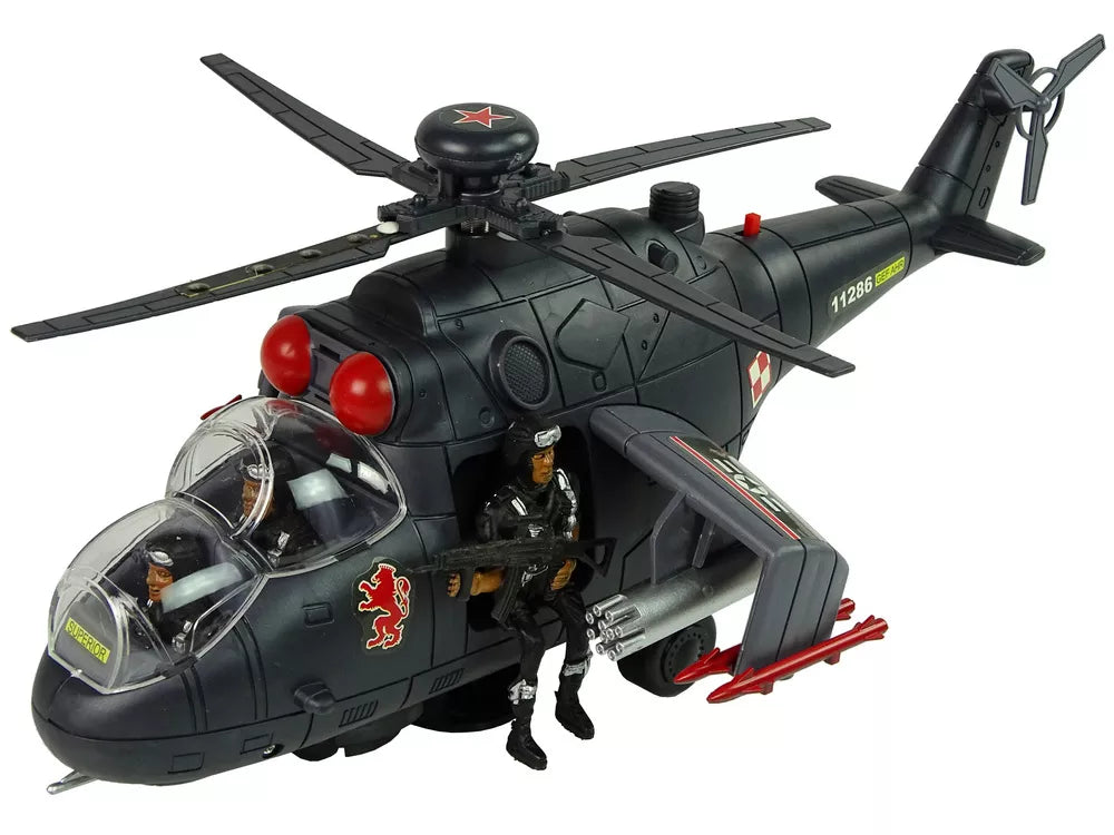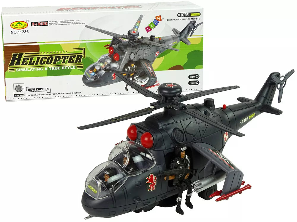 Sraigtasparnis yra pilkos, tamsios spalvos, todėl jį lengva užmaskuoti, leidžiant pasislėpti pavojingam priešui. Visi elementai pagaminti atsižvelgiant į smulkiausias detales, o tai tikrai padarys žaidimą malonesnį kiekvienam berniukui. Ant korpuso yra kariniai lipdukai.