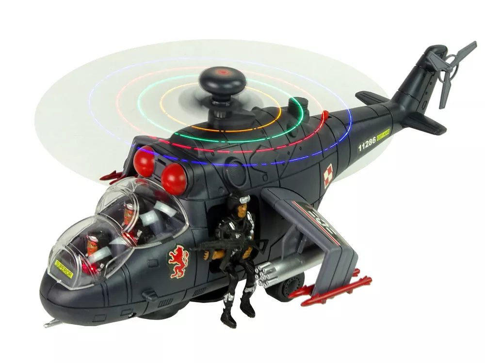 Karinis sraigtasparnis paįvairins žaidimą, patenkins karinio ir aviacijos gerbėjo poreikius. Jūsų vaikas pasijus kaip slaptos karinės operacijos dalyvis. Žaidimas lavins vaikų loginį mąstymą ir strategijos įgūdžius, jie galės atlikti didžiulio karinio sraigtasparnio piloto ir kitų įgulos narių vaidmenis.
