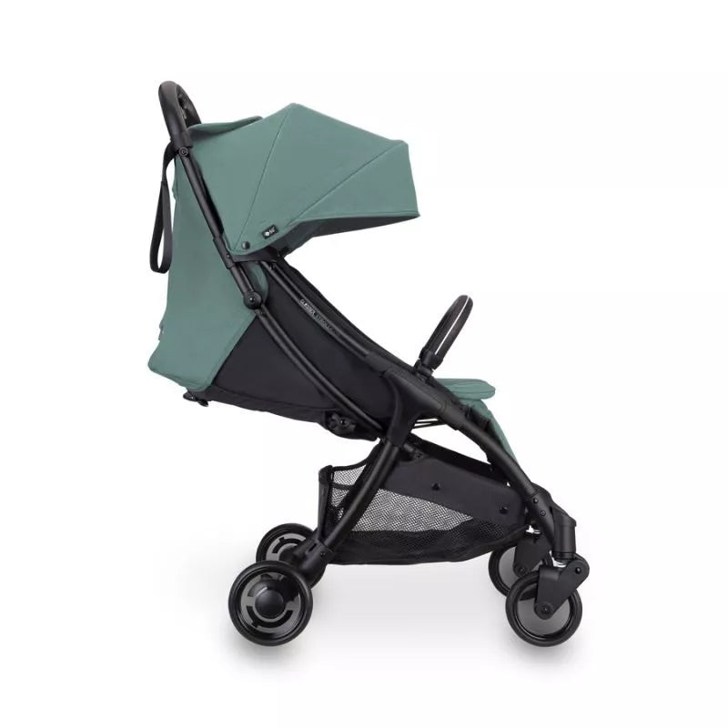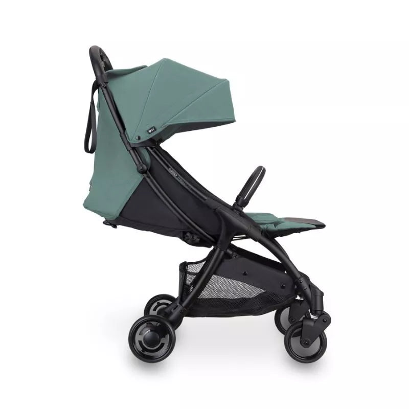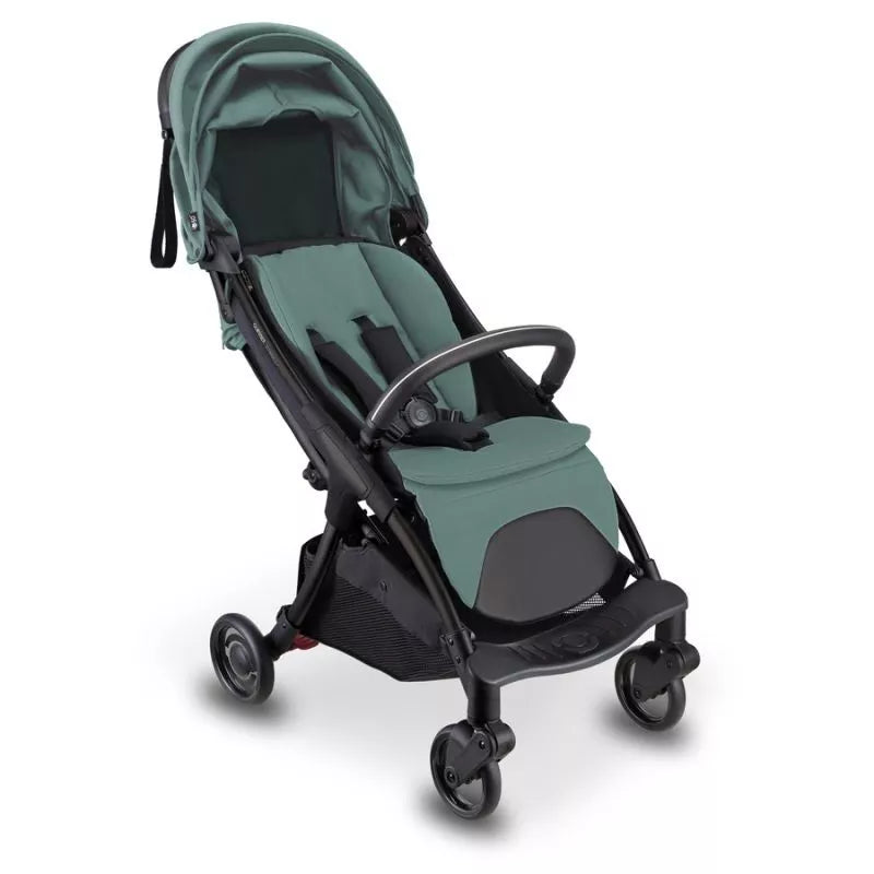 Stovėjimo stabdžių sistema ir tėvų dirželis suteikia ramybę, nesvarbu, ar esate stacionarus, ar judate, o platus stogelis suteikia papildomą UV apsaugą (UPF 50+).