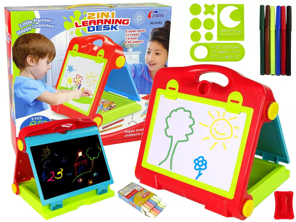 Nauja, edukacinė, didelė lenta pradžiugins kiekvieną mažąjį meno gerbėją. Ant lentos galima rašyti markeriu arba kreida, piešti įvairius raštus.