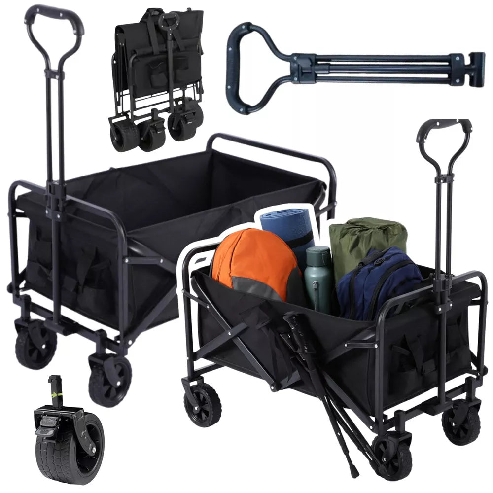 Sulankstomas sodo paplūdimio transportavimo vežimėlis, juodas, 120L
