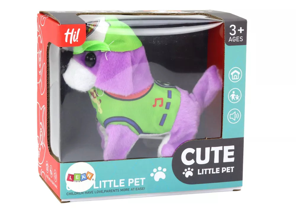 Žavingas interaktyvus šuniukas, kuris taps mėgstamiausiu Jūsų vaiko draugu! Šis mielas šuo yra violetinio kailio, su žalia skrybėle ir drabužiais, o dėl savo kompaktiško dydžio jį lengva pasiimti bet kur.