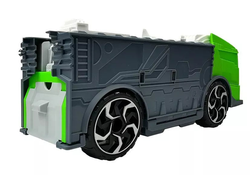 Jei jūsų vaikas yra priešistorinių dinozaurų gerbėjas, šis rinkinys jam bus tobulas. Transporteris paruoštas įkelti dinozaurus ir pervežti juos į tinkamą vietą. Dėl ratų ir ištraukiamos rampos gyvūnų vairavimas, krovimas ir iškrovimas yra lengvas ir be rūpesčių. Didelis sunkvežimis turi daug įdomių elementų savo puspriekabėje. Rūšiavimo sunkvežimis bus fantastiška dovana vaikui, mėgstančiam parką „Jurassic“ ir senovės, didžiules būtybes. Transporteris turi daug funkcijų, kurias vaikas su smalsumu atras.