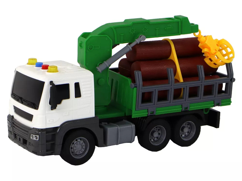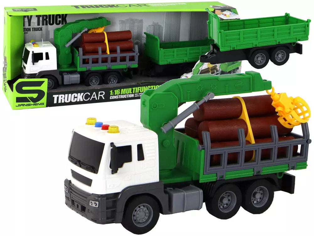 Sunkvežimis su kranu, varomas trintimi, skleidžia garsus, žalias ⭐