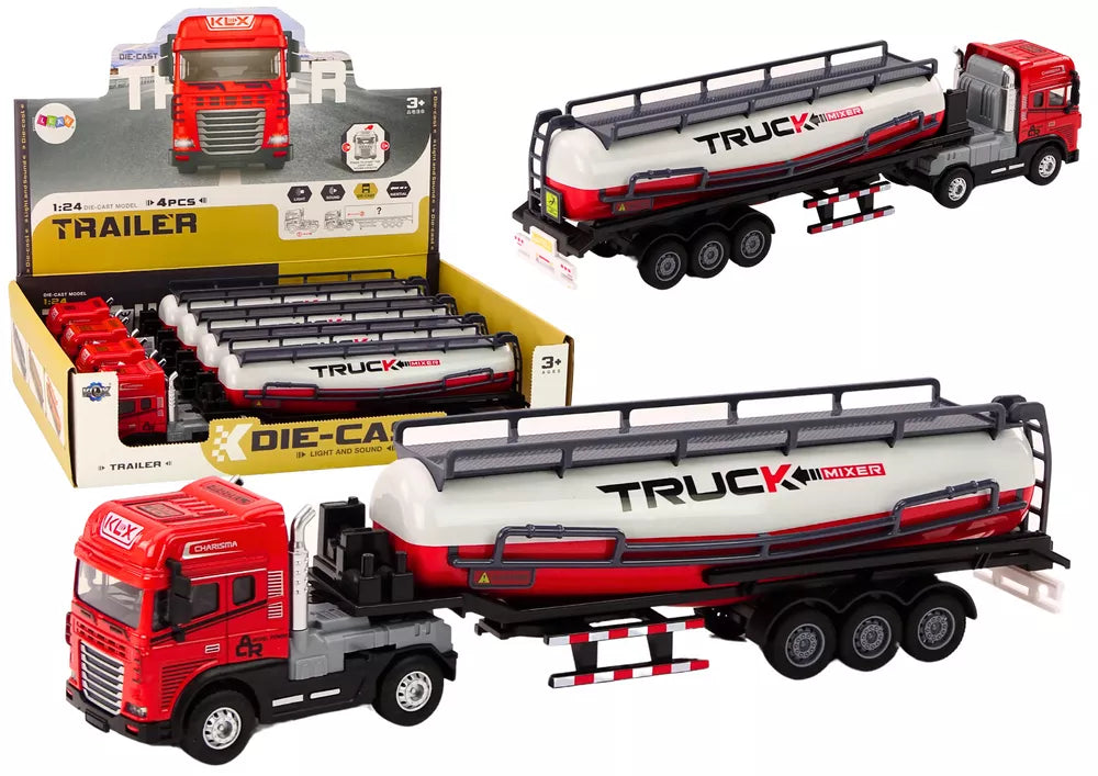 1:24 mastelio sunkvežimio su cisternos priekaba modelis yra realistiškas ir universalus žaislas, kuriame funkcionalumas derinamas su realistiniu tikros transporto priemonės atkūrimu.