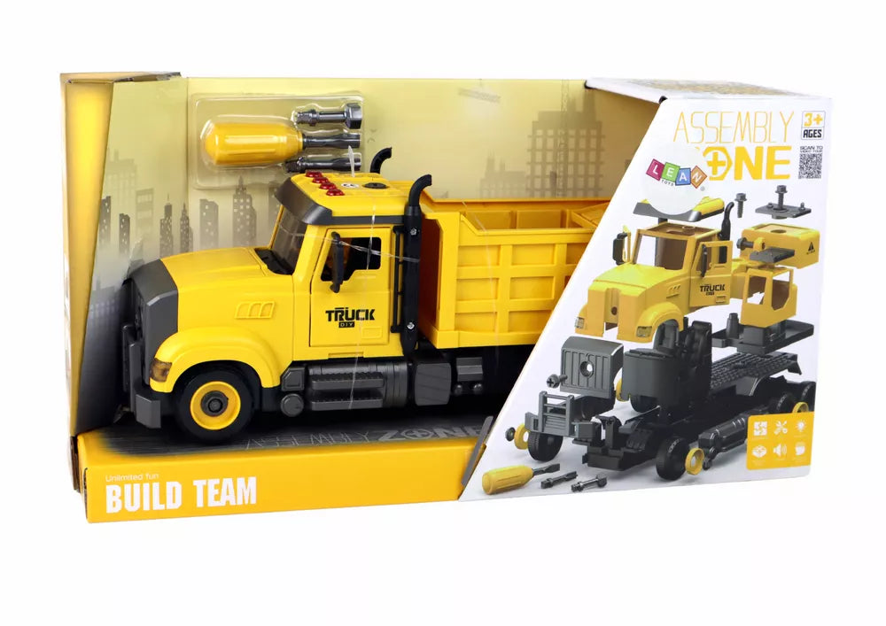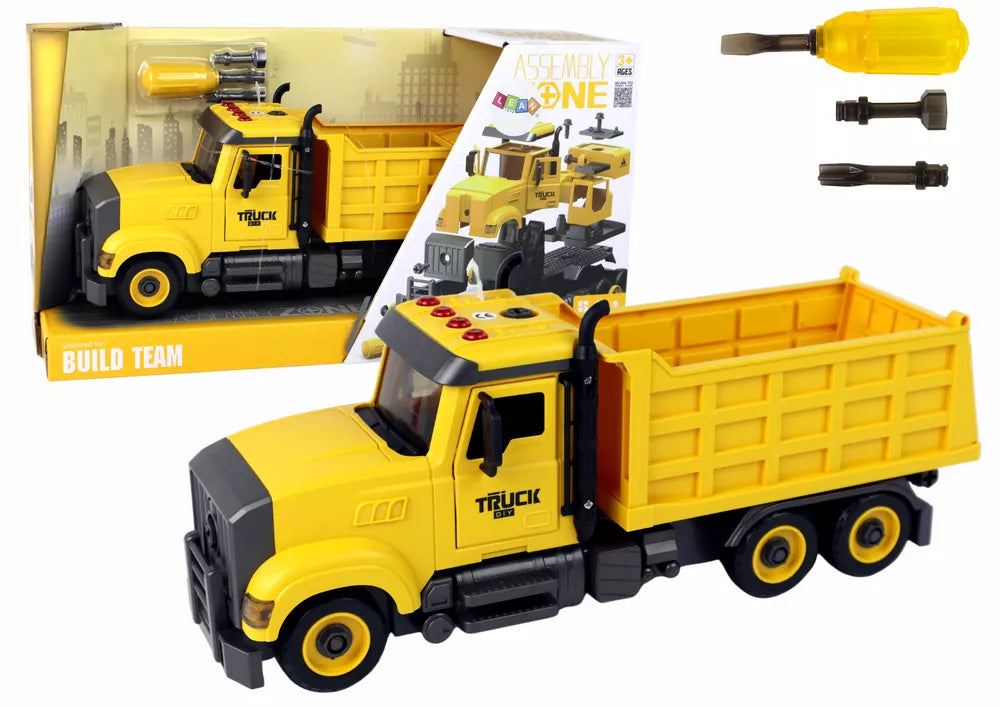 Frikcinė pavara užtikrina paprastą ir dinamišką sunkvežimio judėjimą. Be to, rinkinyje yra atsuktuvas su 2 keičiamais antgaliais, kurie leis interaktyviai žaisti ir eksperimentuoti.