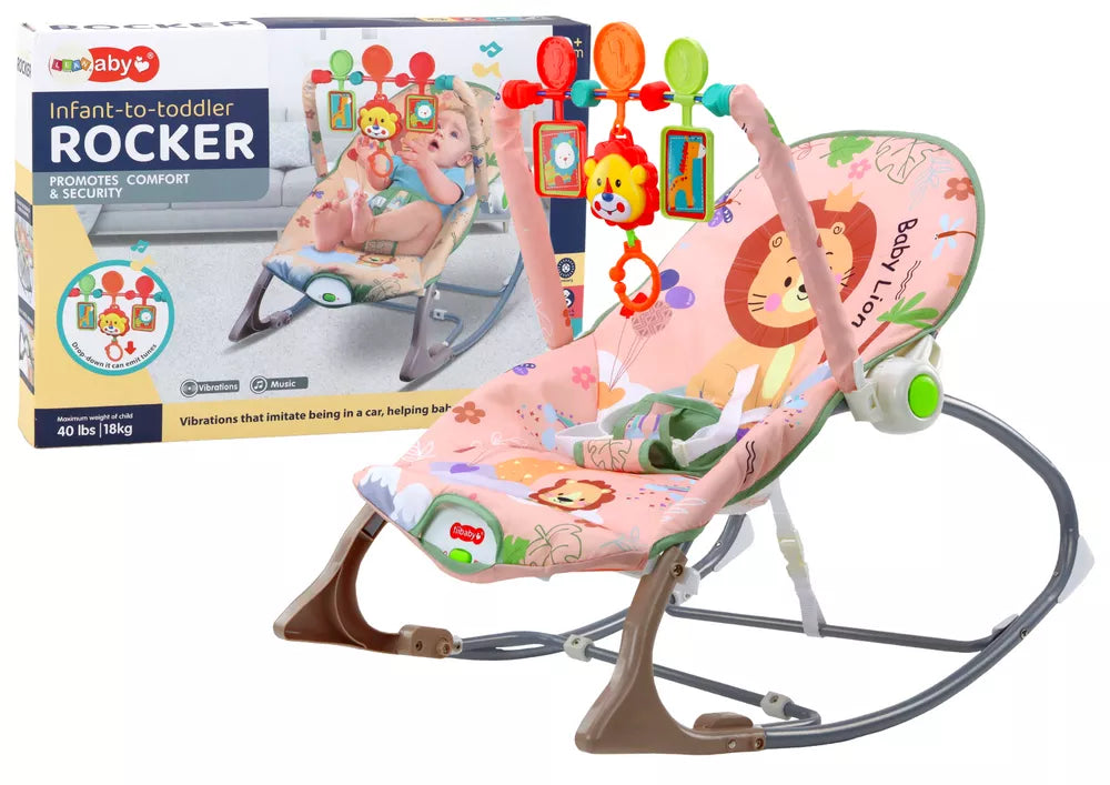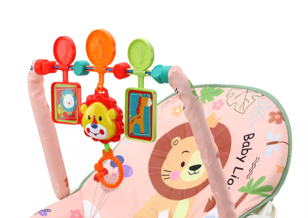 Supamasis krėslas kūdikiui su žavingu draugiško liūto motyvu. Mūsų supamasis krėslas yra ne tik patogi vieta jūsų mažyliui atsipalaiduoti, bet ir interaktyvi žaidimų zona, skatinanti jo vystymąsi.