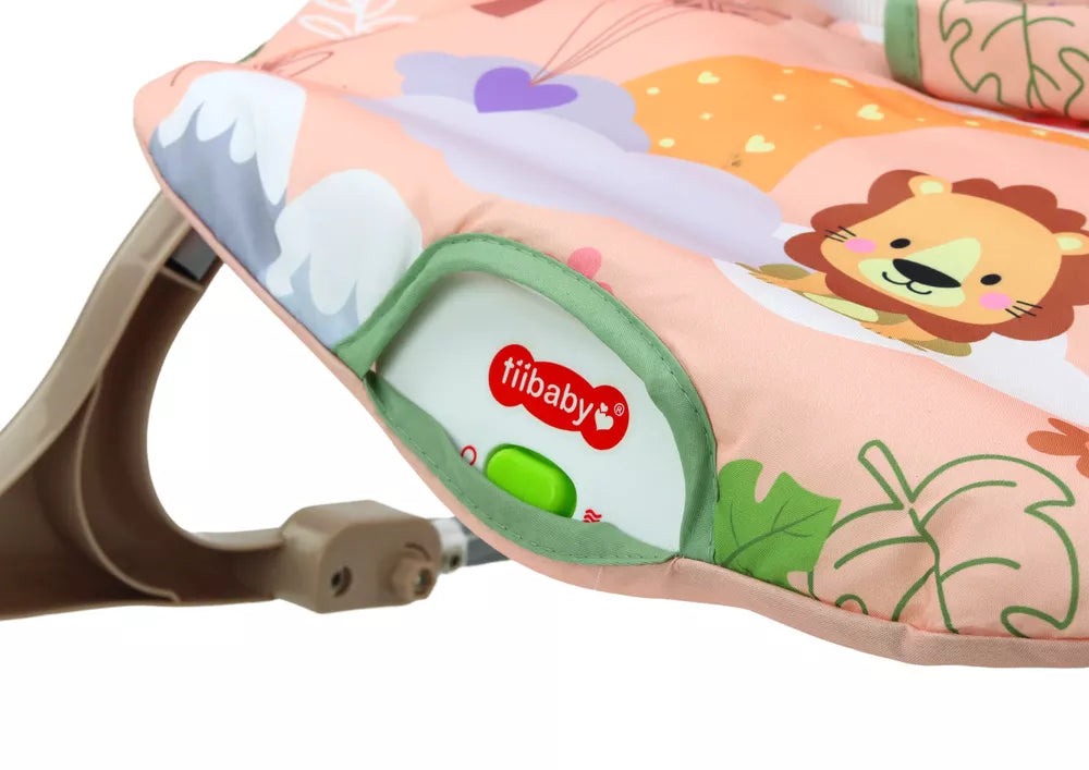 Supamasis krėslas-gultukas kūdikiui su vibracija, garsais ir supimo funkcija, rožinis liūtas