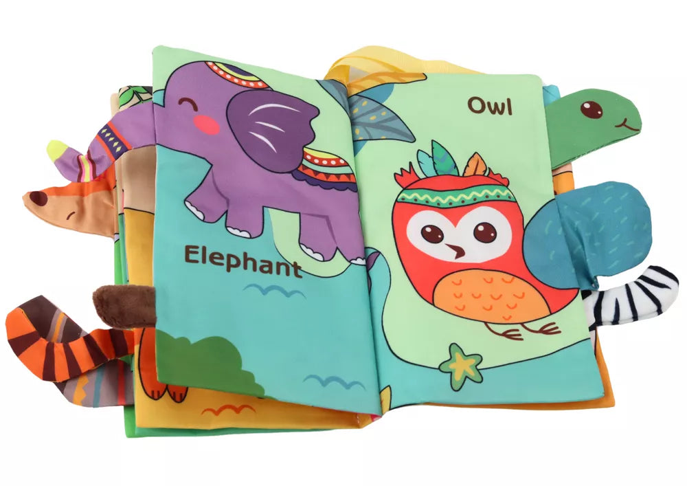 Minkšta knygelė su gyvūnais yra ne tik žaislas, bet ir interaktyvi lavinimo priemonė patiems mažiausiems. Jos minkšta, šlamanti medžiaga ir išsikišę elementai, tokie kaip gyvūnų uodegėlės, suteikia patrauklią jutiminę stimuliaciją, kuri lavina pojūčius ir rankų bei akių koordinaciją.