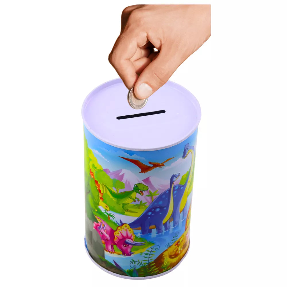 1x metalinė taupyklė su dinozaurų motyvu
