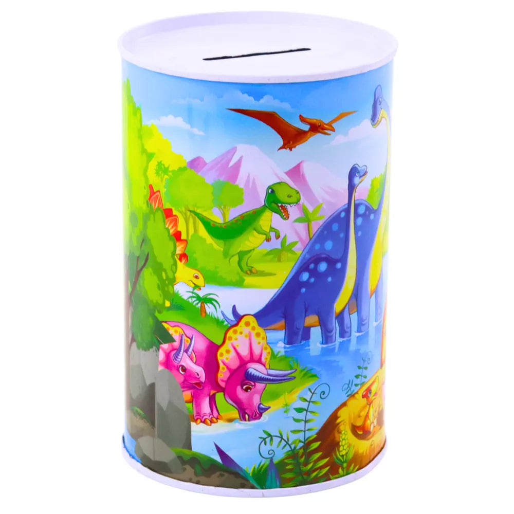 Metalinė taupyklė su spalvingu dinozaurų motyvu yra puikus būdas išmokyti mažiausius taupyti, derinant funkcionalumą ir patrauklią išvaizdą. Pagaminta iš tvirto metalo, ji yra atspari pažeidimams ir kasdieniam naudojimui, o tai reiškia, kad gali tarnauti ilgą laiką. Dėl savo kompaktiškų matmenų, 13 x 8 x 8 cm, taupyklė užima nedaug vietos ir puikiai tiks kaip pirmoji taupyklė vaikui, skatinanti jį sistemingai atidėti pinigus.