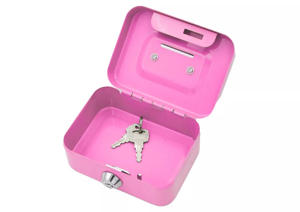 Taupyklė-dėžutė, rakinama, su dviem raktais, metalinė, rožinė