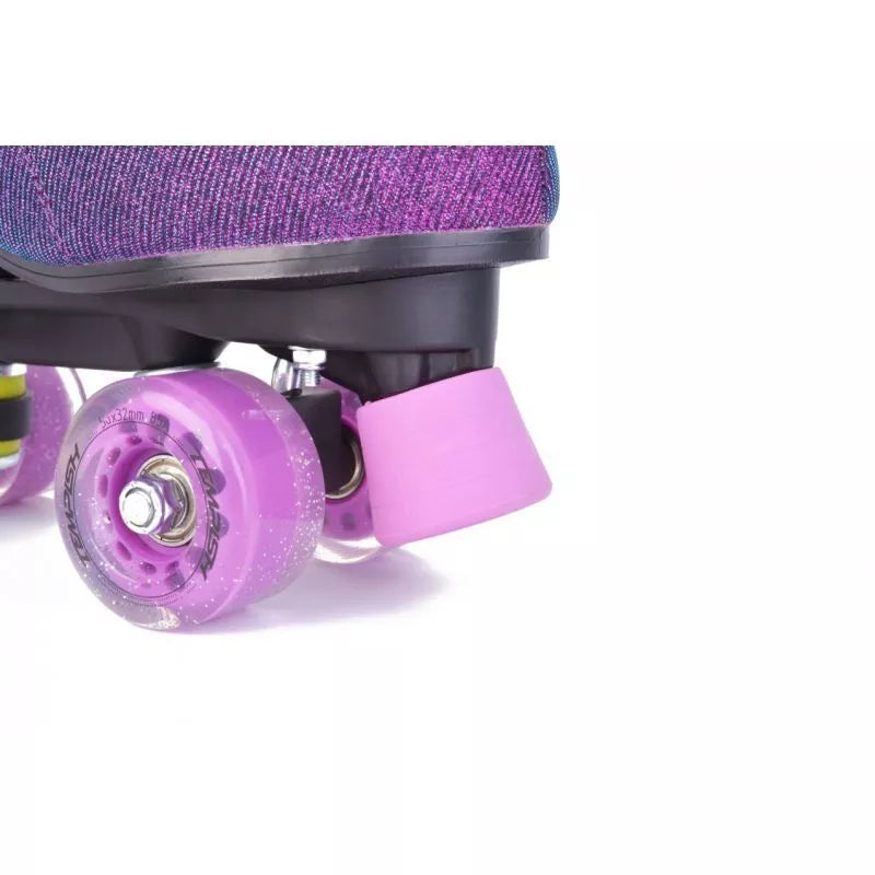 • Aukštos kokybės, skaidrūs poliuretano ratai yra inkrustuoti blizgučiais, kurie dar labiau žiba tiesioginiame šviesos sraute.