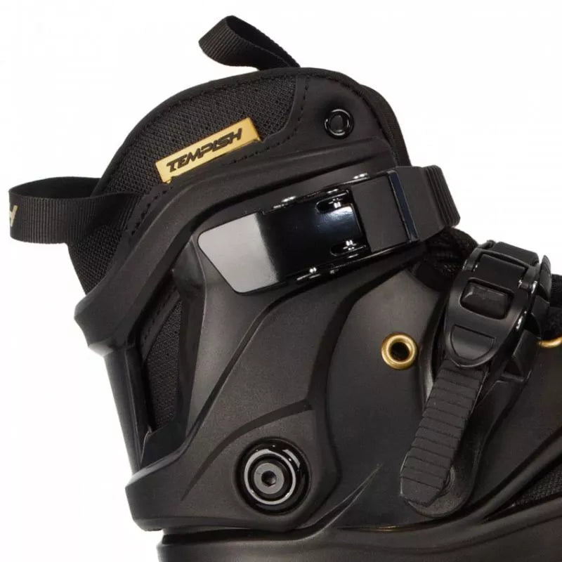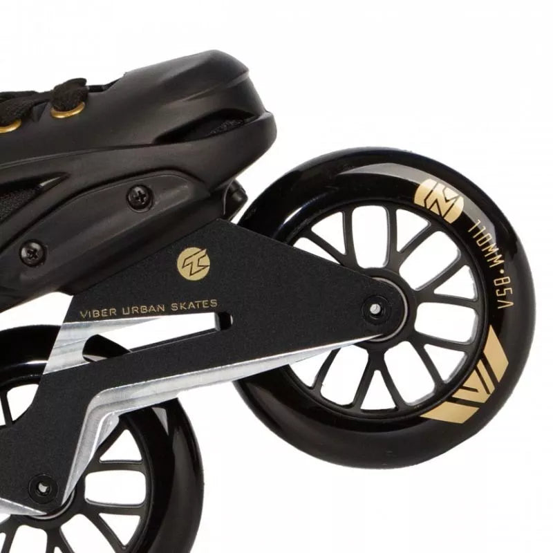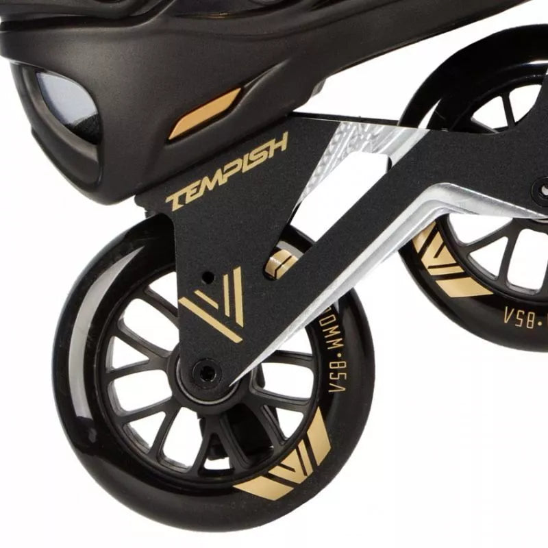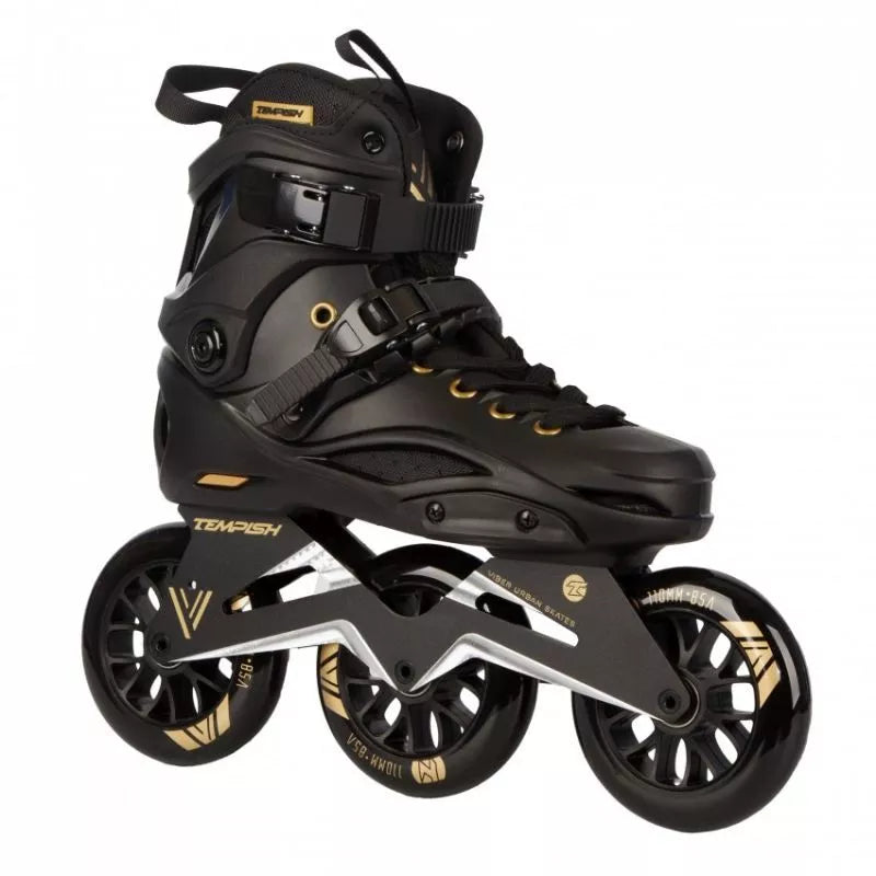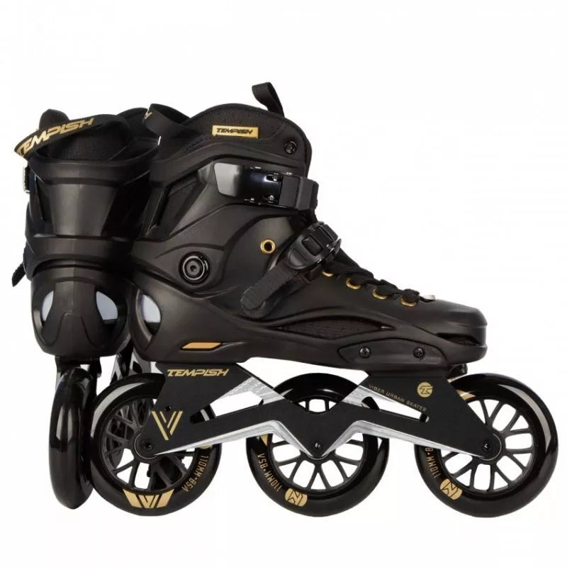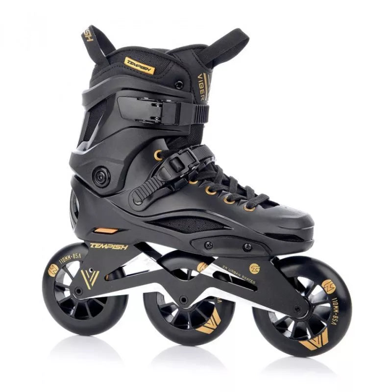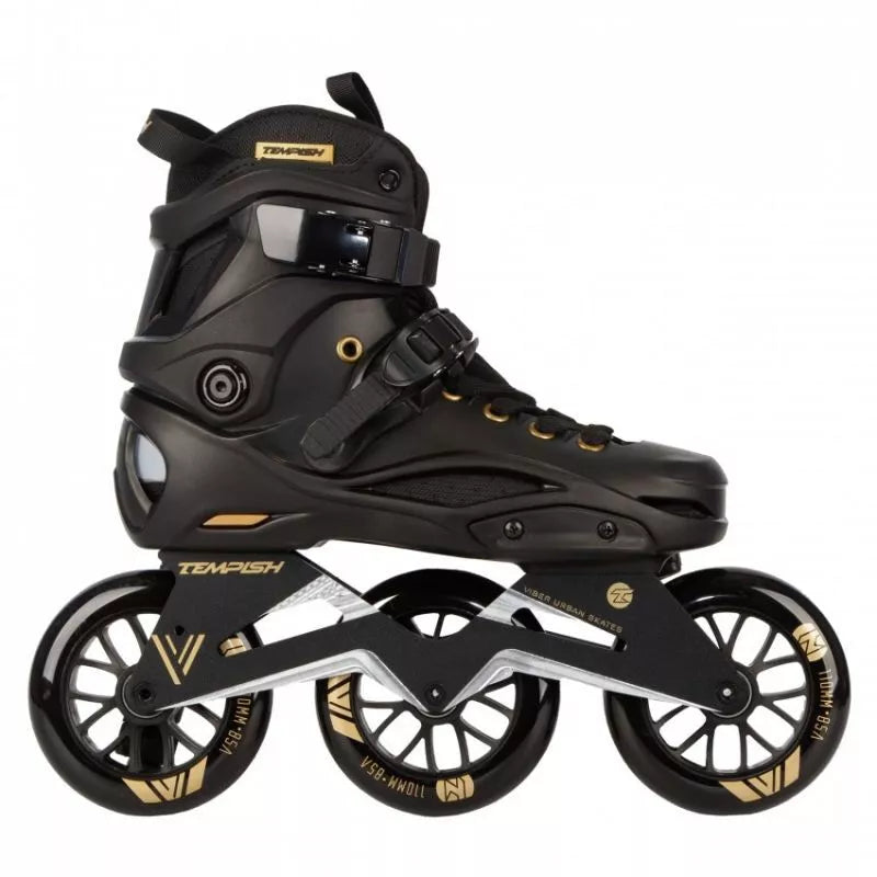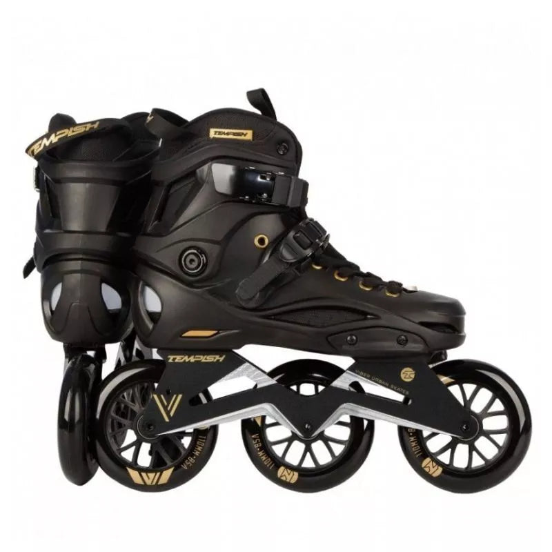 TEMPISH VIBER LE 110 Freeskates sujungia kietą batą su greitais, dideliais 110 mm ratais, užtikrinant nepriekaištingą derinį. Sukurti tiek trumpoms miesto kelionėms, tiek ilgoms trasoms, šie riedučiai puikiai tinka pažengusiems ir patyrusiems čiuožėjams. Dėl aukštos kokybės medžiagų ir kruopštaus meistriškumo šie riedučiai ne tik užtikrina puikų našumą, bet ir maksimalų komfortą bei saugumą kiekvienos kelionės metu. Pagrindinės savybės: Bato dalis: Pagaminta iš kieto, kompozitinio medžiagumo, užtikrinančio tvirtą kojos atramą ir stabilumą čiuožiant. Turi ventiliuojamą vidpadį oro cirkuliacijai ir patogumui. Tvirtinimas: Įrengtas metalinis savaime užsifiksuojantis sagtis ir mikrosagtis ant raištelio, užtikrinantis tikslų ir patogų prigludimą. Rėmas/Važiuoklė: Smarkiai sutvirtintas CNC apdirbtas važiuoklės rėmas su šonine ir išilgine reguliavimo funkcija, sumontuotas ant tvirtų aliuminio blokų su varžtais. Ratai: Trys 110 mm skersmens ratai, skirti dideliam greičiui ir stabilumui. Pagaminti iš PUC, 85A kietumo, jie pasižymi puikiu sukibimu ir ilgaamžiškumu. Guoliai: Aukštos kokybės chromuoti ABEC-9 guoliai su guminiu dangteliu, lengvai valomi ir prižiūrimi. Pritaikymas: Plastikiniai išoriniai apsauginiai elementai ir raištelis gali būti keičiami. Važiuoklės rėme galima sumontuoti mažesnius ratus (minimalus rekomenduojamas dydis: 90 mm). Vidinis batas: Ventiliuojamas vidinis batas su neopreno priekine dalimi didesniam komfortui. Elastinga liežuvio kilpa palengvina apsiavimą. TEMPISH VIBER LE 110 riedučiai yra puikus pasirinkimas pažengusiems čiuožėjams, ieškantiems ilgaamžiškumo, stabilumo ir greičio derinio. Dėl tvirtos konstrukcijos, novatoriškų technologinių sprendimų ir pritaikymo galimybių jie tinka tiek miesto nuotykiams, tiek ilgoms kelionėms takais. TECHNINĖS SPECIFIKACIJOS: Paskirtis: Gatvės (miesto) ir laisvo stiliaus čiuožimas, pažengusiems ir patyrusiems čiuožėjams. NC rėmas, papildomai sutvirtintas, vientisas, reguliuojamas šonine ir išilgine kryptimis. Ratų dydis: 110 mm. Ratų kietumas: 85A. Guoliai: 608, ABEC 9. FitGo suvarstymo sistema. Bato korpusas: Kietas kompozitas. Vidinis batas: Plonas nailonas, sugeriantis mikropluoštas. Po pamušalu kulno dalyje yra gana storas, minkštas ir patogus amortizuojantis TPR medžiagos tylusis blokas, kuris puikiai sugeria vibracijas ir smūgius. Stabdys: Nėra. Viršutinis užsegimas: Sagties. 45 laipsnių užsegimas. Sagties. 6 mm ašys. Svorio riba: 100 kg.