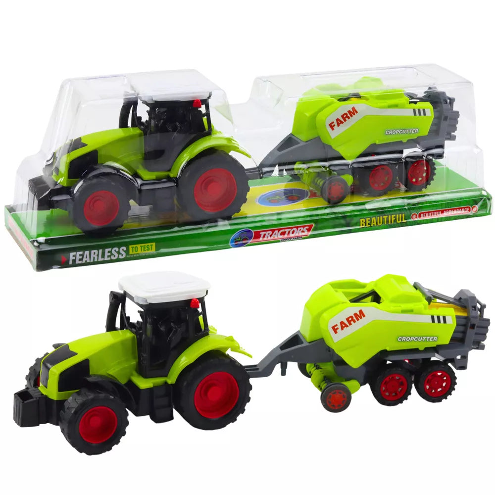 Traktoriaus, žemės ūkio preso ir žalių šieno rulonų rinkinys