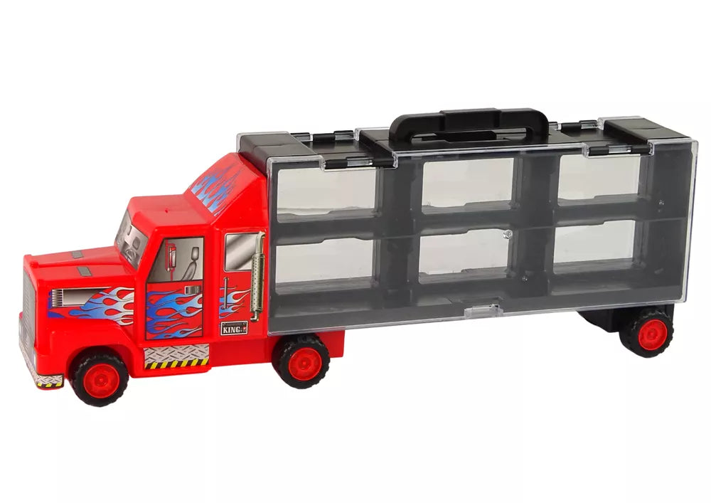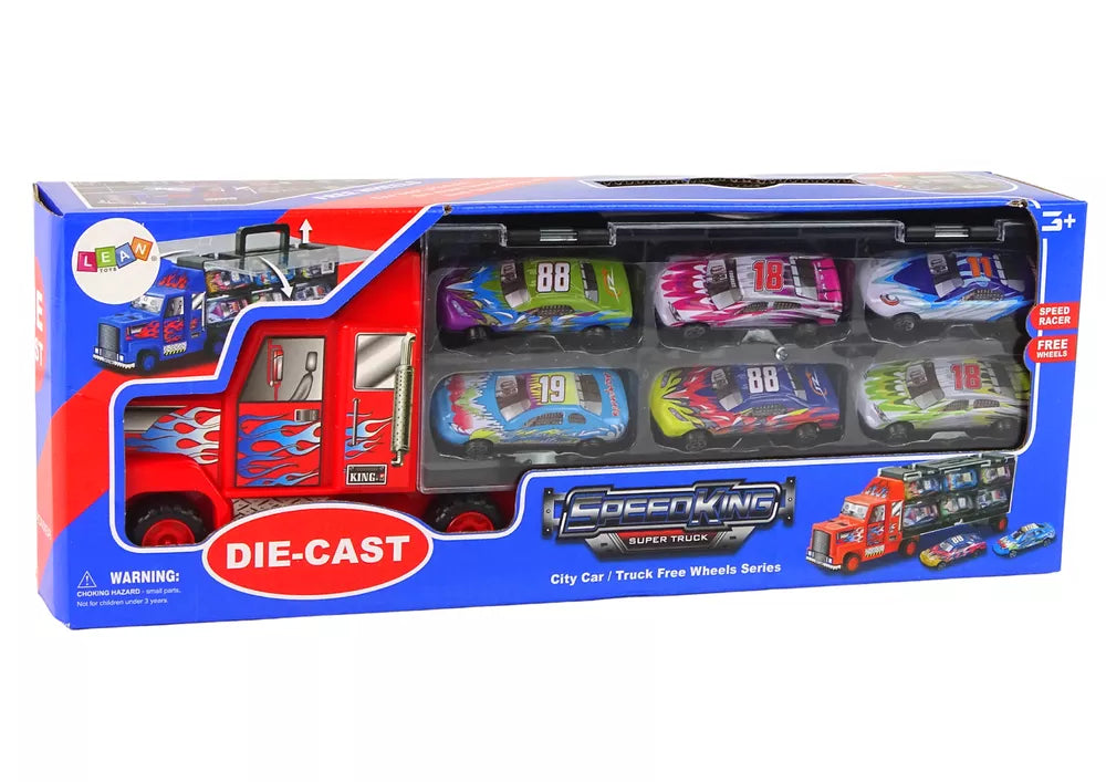 Kiekvienas berniukas mėgsta žaisti su automobiliais ir sunkvežimiais. Pristatysime puikų didelio sunkvežimio rinkinį, kuris priekaboje veža šešis sportinius automobilius! Žaidimas su automobiliais stimuliuoja jūsų vaiko vaizduotę ir taip palaiko jo vystymąsi! Šis rinkinys puikiai tinka automobilių kolekcionieriui ir idealiai tinka naujos kolekcijos kūrimui arba esamos užbaigimui. Transporto priemonės puikiai telpa delne. Rinkinį sudaro spalvingi sportiniai automobiliai su jiems būdingais lipdukais.