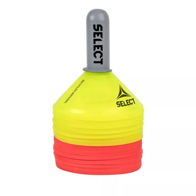 Treniruočių kūgių rinkinys Select, 24 vnt. T26-18423 Savybės: Žymėjimo komplektas.Pagaminta iš perdirbtų medžiagų.Sudėtyje yra 12 geltonų ir 12 raudonų žymekliųbei... Skaityti daugiau