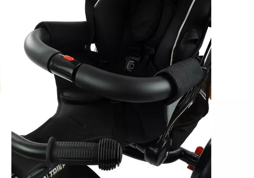 Triratukas savo konstrukcija primena vaikišką vežimėlį. Sulankstomas stogelis su tinkleliu, reguliuojamas atlošas leidžia perjungti į atloštą padėtį – visa tai padės jūsų mažyliui nuo pirmųjų metų iki tada, kai vaikas galės važiuoti pats. Šis triratukas sumontuotas ant trijų putplasčio ratų. Jie yra atsparūs pradūrimams ir daug lengvesni nei pripučiami ratai.