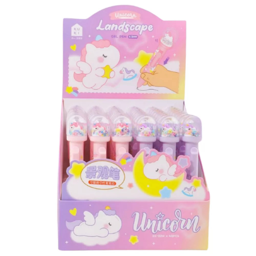 Tušinukas su blizgučiais, kupolu ir vienaragio figūrėle, mėlynas rašalas, 0,5 mm
